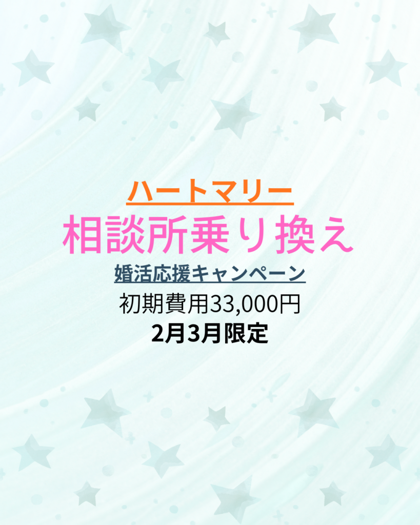 【初期費用33,000円】 女性のための相談所乗り換え 婚活応援キャンペーン!